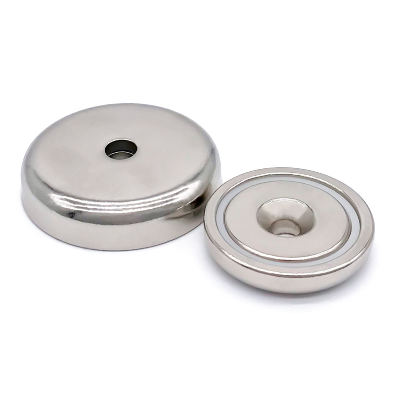 آهنربای گلدانی گرد با یک فنجان آهنی ساخته شده است که دارای یک سوراخ غرق شده و یک آهنربای نئودیمیوم قوی است.این طراحی منحصر به فرد مزایای متعددی را ارائه می دهد.فنجان فولادی به عنوان یک سپر محافظ عمل می کند و از آهنربا در برابر ضربه مستقیم در هنگام تماس با سایر اجسام آهنی یا فولادی محافظت می کند.علاوه بر این، فنجان فولادی همچنین از آهنربا در برابر خوردگی در محیط های مرطوب در فضای باز محافظت می کند و طول عمر آن را تضمین می کند.